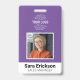 Tarjeta de identificación moderna con placa de empleado de empresa púrpura