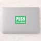 Pulse para abrir pegatinas de vinilo de puerta para la entrada. Disponible en diferentes tamaños, desde pequeño hasta grande. Color verde o personalizado. Señales útiles para la entrada a negocios, tiendas, tiendas, oficinas, restaurantes, edificios públicos, etc. Plantilla de tipografía en negrita de letras grandes. También disponible para tirar puertas.