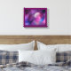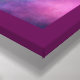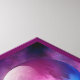 Contra un telón de fondo de nubes reales azules e intrincadas rosadas calientes como galaxias distantes, hay una única orilla de vidrio liso con un fractal giratorio suspendido en el interior.