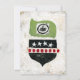 Un ilustracion de taza de café humeante en blanco y negro se sienta sobre una forma verde guisante sobre estrellas blancas y negras, grandes puntos rojos y fondo blanco texturado.