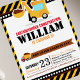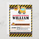 ¡PRECAUCIÓN! ¡Bajo Construcción! Celebra tu fiesta de cumpleaños de la construcción con nuestra invitación a la fiesta de la construcción. Esta invitación a la construcción incluye grúa, camión de basura y camión mezclador de hormigón a rayas amarillas y negras. Perfecto para la fiesta de cumpleaños de su pequeño constructor en construcción o un bebé está en construcción con una ducha de bebé.
