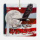 Ornamento navideño con la presentación de In God We Trust recopilando fotos de la bandera norteamericana, un templo de la iglesia con cruz, un águila calva voladora, y la súper luna rosa llena. ¿Buscando más impresiones o productos? Siéntase libre de visitar mi tienda: http://www.zazzle.com/timelessmomentsphtgy Esta foto fue creada por Jennifer White con Timeless Moments Photography. Todas las imágenes tienen derechos de autor © Timeless Moments Photography/Jennifer White. Todos Los Derechos Reservados.