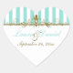 En Forma De Corazón Aqua, franjas blancas, Boda Pegatina