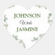 Pegatina de corazón de invitación de boda de hojas de color de agua verde