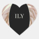 Pegatina de corazón personalizable ILY. Crema y negro, rosa de fantasía, acentos metálicos.