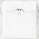El diseño cuenta con un ramo de vegetación eucalipto y hermosas hortensias con un borde gris liso.