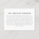 Esta moderna tarjeta de oración conmemorativa de tres fotos con escritura caligráfica servirá como un homenaje duradero a tu ser querido. Se puede entregar a los invitados como un favor funerario o enviarlos dentro de sus notas de agradecimiento de simpatía. El salmo de la parte de atrás puede ser reemplazado por un poema o verso de su elección.