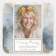 Elegante color azul Relieve metalizado Faux de color azul One Photo Memorial / Funeral / Celebración de pegatinas keepsake. Fácil de ajustar con su propia foto e información de texto. Foto de archivo creada con software de IA. Cambia a tu propia foto.