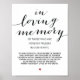 En memoria amorosa Señal de mesa conmemorativa de