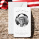 Simple y elegante tarjeta de oración para el funeral y el funeral de un ser querido. El frente presenta "In Loving Memory of" y "eternamente in our heart" en una mezcla de tipografía y escritura. Personaliza con su foto, nombre, fecha de nacimiento y muerte. En el reverso aparece un largo pasaje inspirador ("Llene sus corazones con dolor") y un mensaje más corto, o un personalizar propio