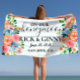 ¿Acaban de casarse? ¡Celebren su nuevo estado con esta hermosa toalla de playa personalizada con flores y la leyenda 'En Nuestra Luna de Miel'! Esta elegante toalla de playa con nombre personalizado es perfecta para la despedida de soltera, regalo para el grupo de la novia, toallas de baño para la boda, la novia y favor para la despedida de soltera. También es un gran regalo de boda, regalo de luna de miel o simplemente un regalo para los nuevos señores.