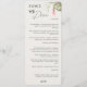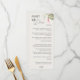Un diseño de menú boda fresco. Con una caligrafía moderna combinada con una tipografía serif elegante para una moda con un ilustracion acuarela de vegetación tropical y flores en colores tenues. Si necesitas ayuda o tienes preguntas, por favor contacta conmigo (María) usando el botón de contacto de abajo, ¡estoy feliz de ayudar!