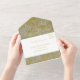 Plata y Oro Linings, boda, invitación todo en uno. Todos los elementos de diseño se pueden editar (mover, cambiar de tamaño, eliminar, duplicar, rotar, etc.) a ambos lados de la invitación. Siéntase libre de editar para hacer de esta su propia invitación única y especial para su día de boda! Personalice borrando texto y agregando sus propias palabras. Usa el color, el tamaño y el estilo de tu fuente favorita. ¡Invitación todo en uno boda o uso para cualquier evento de celebración! Estilo: Las invitaciones todo en uno invitadas todo en uno todo en una boda son una combinación única de una invitación personalizado bien impresa con una postal RSVP fácil de desgarrar. ¡Y son tan fáciles de usar! Simplemente se pliega, después sella la solapa de atrás con los tres pegatinas claros incluidos y el correo. Y cuando sus invitados reciben la invitación de su personalizado, ¡simplemente sacan la tarjeta RSVP perforada y la envían de vuelta al correo! Dimensiones: 5,6" x 4,5" plegado, 5,6" x 12,125" desplegado Fácil de desprender tarjeta postal RSVP de 5,6" x 4,25" perforada; tamaño postal USPS calificado No se necesita sobres para el envío - Sello y envío! Dos tarjetas de papel de alta calidad para elegir. Dos opciones de impresión disponibles: Estándar y Alta Definición Incluye tres pegatinas redondos claros para sellar el tipo de papel cerrado: Matte A classic, todo alrededor del papel con un toque natural y un acabado mate sin revestir; nuestro mate estándar es la prueba del tiempo. Los colores impresos son más suaves y tenues, dándole un toque elegante y sutil a tus diseños. Espesor de 17,5 pt / peso de 120 lb / 324 GSM El acabado mate claro blanco sin revestir con una textura de concha de huevo El papel es fácil de escribir y no se mancha Fabricado e impreso en los Estados Unidos