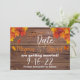Mi esposo y yo nos casamos en otoño y no podría pensar en un momento más hermoso del año para dar el paso. Recuerde a sus invitados los hermosos colores de la temporada y el clima increíble mientras los invita a "Enamorarse" con usted en su día especial.
