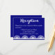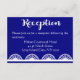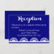 Haz que sea fácil para los invitados asistir a la recepción de tu boda con esta tarjeta de recepción de boda azul real inspirada en encaje vintage.