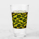 Fotografía en color de encaje negro/verdoso sobre un fondo amarillo.