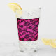 Fotografía en color de encaje negro sobre un fondo sólido magenta.