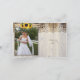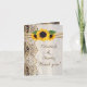 Tarjeta de agradecimiento de boda con encaje blanco elegante, cinta, girasoles y madera con tu foto en el interior con encaje blanco sobre madera con dos cintas de satén cruzadas y girasoles. Texto en marrón. Tenga en cuenta que el encaje, la madera y los girasoles están todos "impresos" y no son tela o flores reales. Este diseño elegante, sofisticado y romántico con esencia rústica es parte de un conjunto de boda y es perfecto para una boda campestre chic o western de otoño con una paleta de colores neutros.