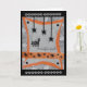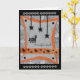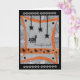Esta divertida tarjeta de saludo de Halloween ha sido diseñada digitalmente con base en un original hecho a mano por el Gilded Quill. La parte delantera representa a un gato aterrador sorprendido por las arañas negras que caen del techo. ¡Dentro de la tarjeta está el saludo de "Halloween feliz"!