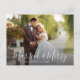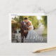 Tarjeta de vacaciones de invitación boda con escritura blanca y un mensaje de agradecimiento a sus invitados. La imagen de las parejas se puede personalizar.