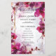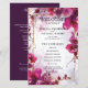 ¡He aquí la tarjeta del programa de bodas de la Bloom de Fuchsia ✨! El frente de esta tarjeta rebosa de flores de fucsia vibrantes y acentos dorados intrincados, creando una guía visualmente impresionante a través de los eventos del día. Volteando, encontrarás un fondo de fucsia elegante y sólido que contrasta perfectamente con el elegante texto blanco. Este lado enumera todos los nombres vitales de la fiesta de bodas, y destaca a los que hicieron posible su gran día. El texto del personalizable permite incluir toques personales, lo que hace de esta tarjeta de programa un regalo muy apreciado para usted y sus invitados.