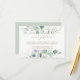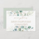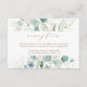 Esta tarjeta del recinto de la recepción de bodas incluye eucalipto de color agua pintado, hojas de purpurina verde botánico y dorado con escritura dorada.