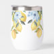 ¡Encontré su principal garganta personalizada de vino termal de limón y flores para ser la novia! Con hermosas flores de color azul de pizarra polvorienta y limones amarillos dulces.