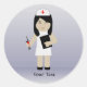 Un ilustracion gráfico de una linda enfermera lista para dar una foto disponible en una variedad de productos.