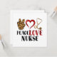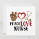 Celebra la compasión y el cuidado en el corazón de la enfermería con esta alegre tarjeta de saludo "Paz, Amor, Enfermera". Con una mano en un signo de paz, un corazón y un estetoscopio, este ilustracion capta la mezcla perfecta de amabilidad, dedicación médica y amor por la profesión. Ideal para enfermeras, estudiantes de enfermería, CNA y héroes de la salud que traen paz y sanación a cada turno. Un homenaje alegre y significativo a los que viven la vida de enfermera con corazón y propósito.