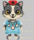 Una linda enfermera gata con matorrales, con gorra roja y estetoscopio. Acompañado por el lúgubre texto: "Me importa, me importa mucho, es algo así". Perfecto para diseños de temática médica con un toque de encanto y humor.