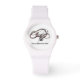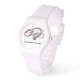 Este reloj blanco personalizado tiene una banda de goma blanca y una segunda mano. Se puede personalizar con el nombre y/o la facilidad.