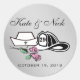 Gorra de enfermería y casco de bombero con número de estación de bomberos. Fondo silencioso con rosas rosas y verdes. Debajo muestra el nombre de la pareja en un hermoso tipo de letra y fecha boda. Puedo personalizar fácilmente este diseño para boda.