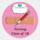 Enfermería Clase Estudiantil de pegatinas de la ronda 2016. Gran tirita con diseño de jeringuilla y tapón de enfermera. Hace un regalo perfecto para la graduación.