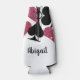 Adorna ese cuello largo con un enfriador de lata "Dama de Honor" totalmente personalizado que presenta una dispersión de palos de cartas en brillo rosa y negro con texto personalizado para el nombre de la dama de honor. Reúne a las chicas para celebrar a la novia con un fin de semana en la afortunada Las Vegas o simplemente una noche al estilo de Vegas.