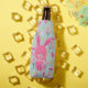 Bunnies y flores rosadas diseñan artículos para el hogar, la oficina y el uso personal, incluyendo mousepads, espejos compactos, carteras, relojes, tablas de borrado en seco, altavoces y muchos otros artículos. Flores de bonito rosa, blanca y amarilla sobre un fondo azul con un conejo rosa brillante.