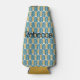 Este refrigerador de botellas tiene un diseño Art Deco de arcos y Ys boca abajo repitiendo en todo el diseño en turquesa y amarillo sobre un campo de blanco. Mantenga el nombre, cámbielo o elimínelo por completo. ¿Quieres colores diferentes? Mándame un mensaje.