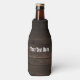 Funda para botella con aspecto occidental rústico de madera oscura.