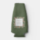 Frasco De Boda De Pino Verde. Mantén tus bebidas frías y elegantes con nuestros refrigeradores de botellas verdes con un mensaje de agradecimiento en la parte trasera, parte de la "Elegante suite Boda Pinecone Greenery". Con una vegetación pintada a mano y ramos de pino, estos colores le dan un toque cohesivo y elegante a su celebración, haciendo que cada detalle se sienta especial.