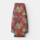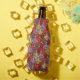 Este refrigerador de botellas tiene un diseño art deco de tulipanes de pentagones y trapezoides en naranja, rojo, púrpura, dorado y verde.