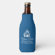 This professional realtor bottle cooler is custom made with your real estate company name under the modern cursive script for an open house. These chic custom blue and white realty business promotional items feature a house logo image for home builder or realty agent company marketing.