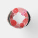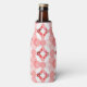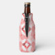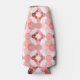 Este refrigerador de botellas tiene un diseño geométrico de círculos concéntricos en tonos rojos formando dos cuadrados sobre un campo de blanco.