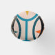 Este refrigerador de botellas tiene un diseño moderno de mediados de siglo de círculos verde azulados unidos con estrellas dentro de cada uno en colores retro.