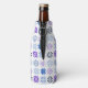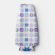 Este refrigerador de botellas tiene un diseño invernal de diferentes copos de nieve en azul y violeta en filas.