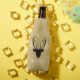 Este refrigerador de botellas presenta silueta de antílamos de venado y copos de nieve en blanco y negro sobre un fondo de efecto texturado en tonos dorados. El texto opcional de 'Happy Holidays' ha sido provisto con una plantilla para añadir tu nombre u otro texto. Busque ID861 a ID864 para ver opciones de color adicionales y otros productos en este moderno conjunto de diseño de Navidades.