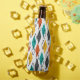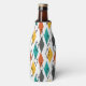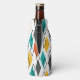 Este refrigerador de botellas tiene un diseño moderno de mediados de siglo de diamantes en naranja, amarillo, turquesa, gris y esparcidos por todo el campo de blanco.