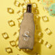 Mantén tu bebida fresca con este refrigerador de botellas de moda que incluye tu nombre y monograma en blanco y negro sobre un fondo de Relieve metalizado brillante de purpurina dorado.