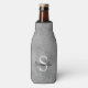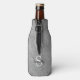 Mantén tu bebida fresca con este refrigerador de botellas de moda con tu nombre y monograma en blanco y negro sobre un fondo de Relieve metalizado brillante de purpurina plateado.
