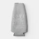 Un pequeño detalle para un recuerdo de boda - enfriadores de botella personalizados. Mostramos plata con letras blancas, pero puedes cambiar a cualquier color. Las palabras "Amor, Risa y Felices para Siempre", sus nombres y fecha de boda aparecen en la parte delantera. Idea divertida para regalar en la fiesta de boda, cena de ensayo o recepción de boda. MÁS COLORES en nuestra tienda.