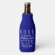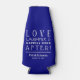 Un pequeño detalle para recordar el día de la boda - enfriadores de botella personalizados. Mostramos azul marino con letras blancas, pero puedes cambiar a cualquier color. El texto "Amor, Risas y Felices por Siempre" es completamente personalizable o simplemente personaliza con tus nombres y fecha de boda. Puedes agregar texto en la parte posterior. Utiliza la herramienta "Personalizar" de Zazzle para ingresar tu información. Si necesitas cambiar la ubicación de los cuadros de texto, el color o tamaño de la fuente, simplemente haz clic en el botón "Haz clic para personalizar aún más" para cambiar esas cosas y/o agregar texto en la parte posterior e inferior y cambiar el color de fondo. Una divertida idea de regalo para la ducha de boda, cena de ensayo o recepción de boda. MÁS COLORES en nuestra tienda.