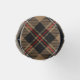Insignia escudo del clan MacKenzie rodeada de correa y hebilla sobre fondo tartán de caza marrón. Texto personalizado.